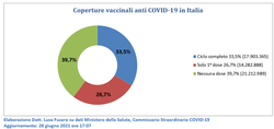 Superati i 50 milioni di dosi somministrate: 50.452.251 (dato aggiornato al 29 giugno ore 06:07). Al 28 giugno (aggiornamento ore 17:07), il 60,3% della popolazione ha ricevuto almeno una dose di vaccino (n. 32.186.253), il 33,5% ha completato il ciclo vaccinale (n. 17.903.365), il 26,7% ha ricevuto solo la 1ᵃ dose (n. 14.282.888), il 39.7% nessuna dose (n. 21.212.989).