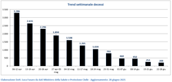 Da 11 settimane consecutive sono in calo anche i decessi. Nell’ultima settimana si attestano a 209, in media 30 al giorno.