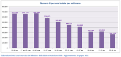 numero di persone testate per settimana: da 320.054 a 266.574 (-16,7%);