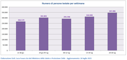 · numero di persone testate per settimana: da 310.949 a 347.406 (+11,7%);