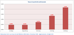 Monitoraggio settimanale dell’epidemia da Covid-19 in Italia a cura del Dott. Luca Fusaro: dati aggiornati al 26 luglio 2021 ore 17:00 (dati monitoraggio epidemia) e al 27 luglio 2021 ore 06:08 (dati vaccini).