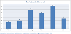 · nuovi casi settimanali: da 83 a 37 (-55,4%);