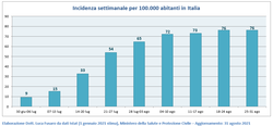 L’incidenza settimanale per 100.000 abitanti rimane stabile a 76.