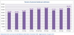 · numero di persone testate per settimana: da 350.567 a 381.799 (+8,9%);