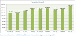 · tamponi settimanali: da 1.451.954 a 1.664.768 (+14.7%).