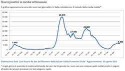La media mobile settimanale dei nuovi casi si sta progressivamente appiattendo (plateau) e si attesta a 6.453.