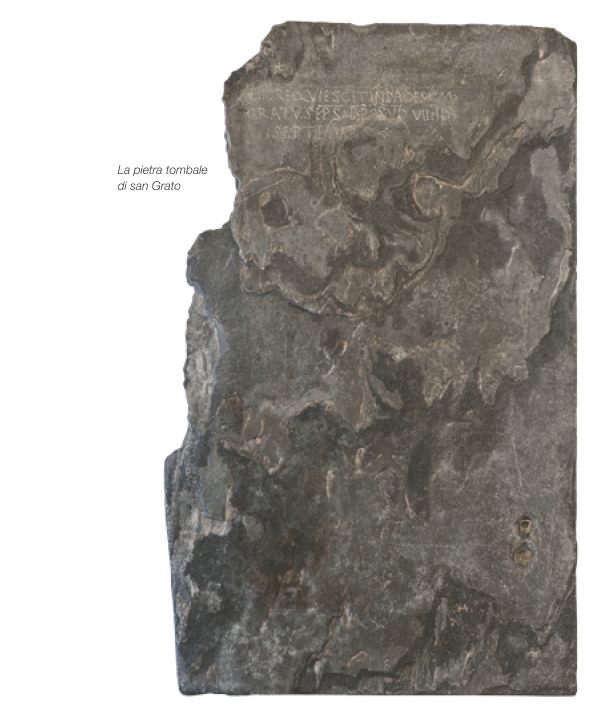 La popolarità del culto di san Grato risale però al XII o al XIII secolo, quando le sue reliquie furono traslate dalla chiesa paleocristiana di San Lorenzo, che sorgeva a est della città nella zona dell’attuale collegiata di Sant’Orso, alla cattedrale, dove sono tuttora conservate in un reliquiario in argento e rame dorato del XV secolo.