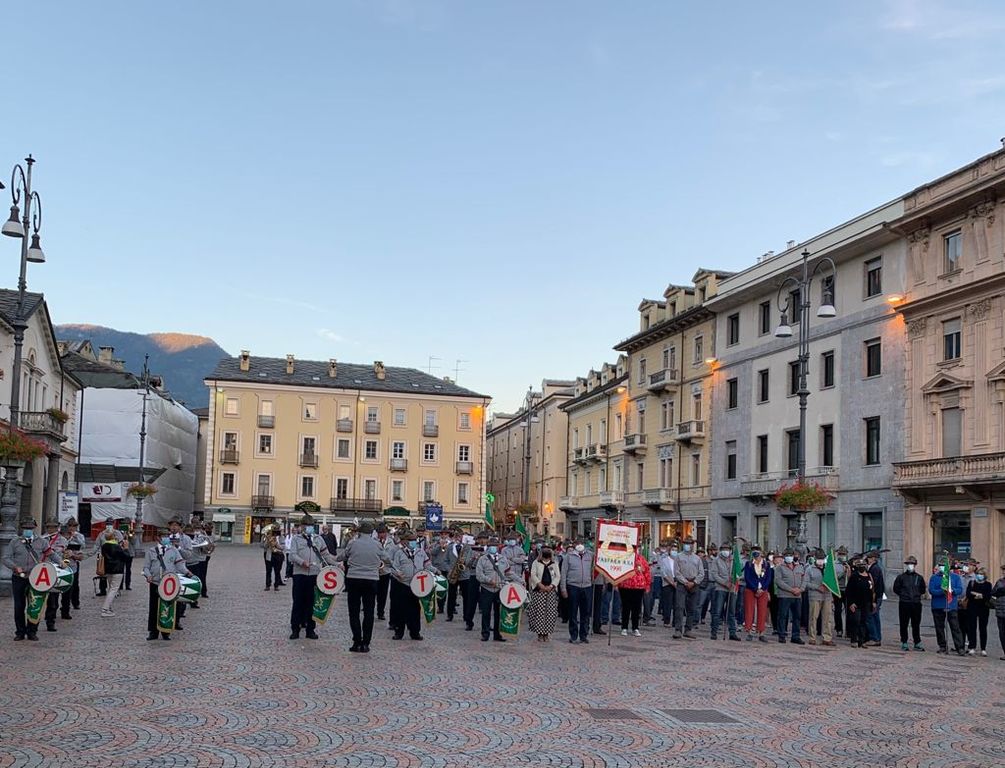 Una Cerimonia accompagnata dalle note della Fanfara diretta dal Maestro Giancarlo Telloli che ha scandito, con la solita bravura tutti i momenti istituzionali, sulla piazza davanti al Monumento del Soldato Valdostano, accanto alla Bandiera Tricolore, retta dall'alpino Franco Giandolini e al Vessillo della Sezione Valdostana, affidato all'alpino Alfonso Sagaria.