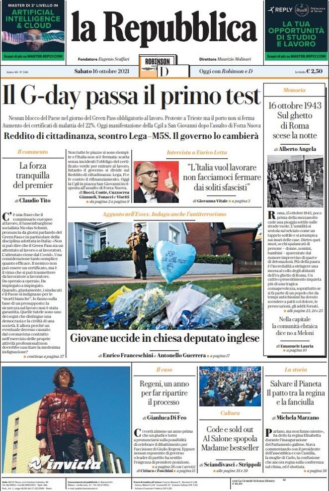 LE PRIME PAGINE DEI QUOTIDIANI DI OGGI 16 OTTOBRE