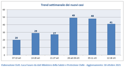 · nuovi casi settimanali: da 48 a 41 (-14,6%);