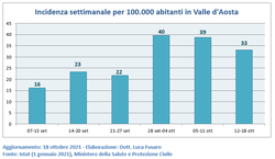 In Valle d'Aosta il tasso di positività calcolato sui tamponi si riduce da 0,8% a 0,5%, ciò significa che è stato necessario processare circa 200 tamponi per trovare un positivo.