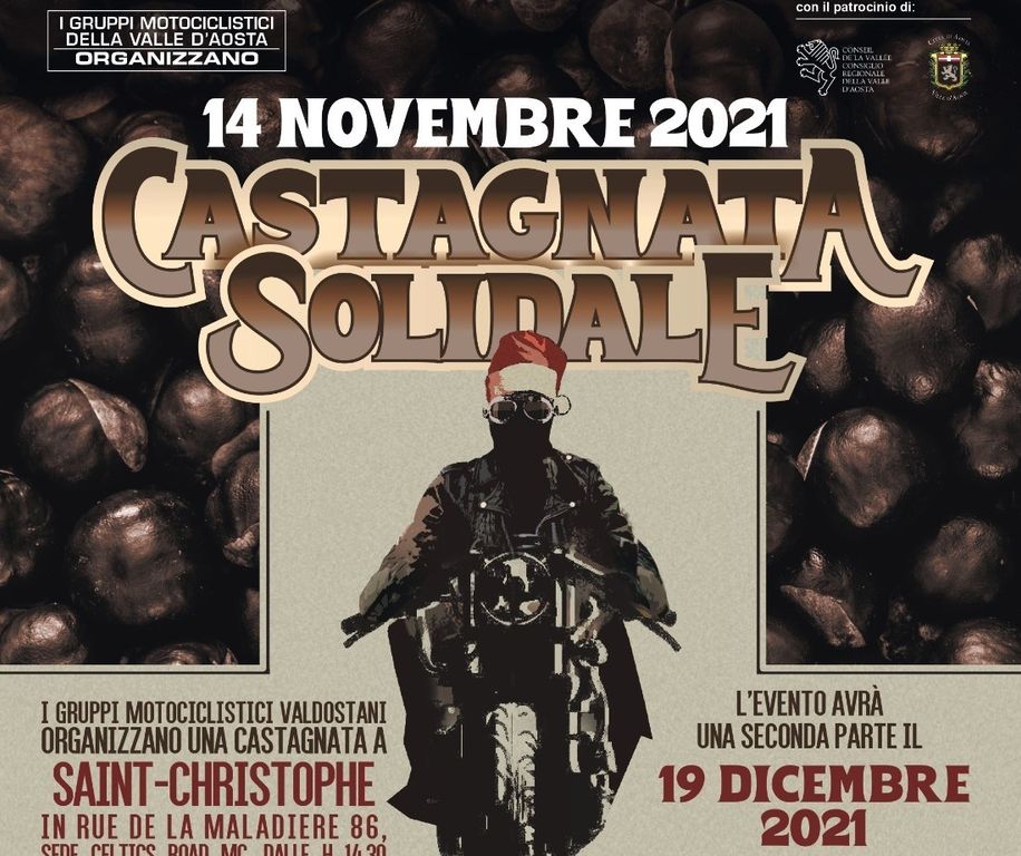 Castagnata Solidale domenica 14 novembre, per tutto il pomeriggio a partire dalle ore 14.30, a Saint-Christophe. Musica dal vivo e caldarroste a volontà preparate dagli stessi motociclisti animeranno l'area in rue Maladière 86, sede dei Celtics Road Moto Club.