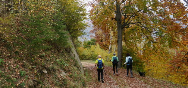 Questa breve passeggiata, dopo una prima parte in un bel bosco di faggi, segue un bel costone al sole tappezzato di piccoli villaggi.