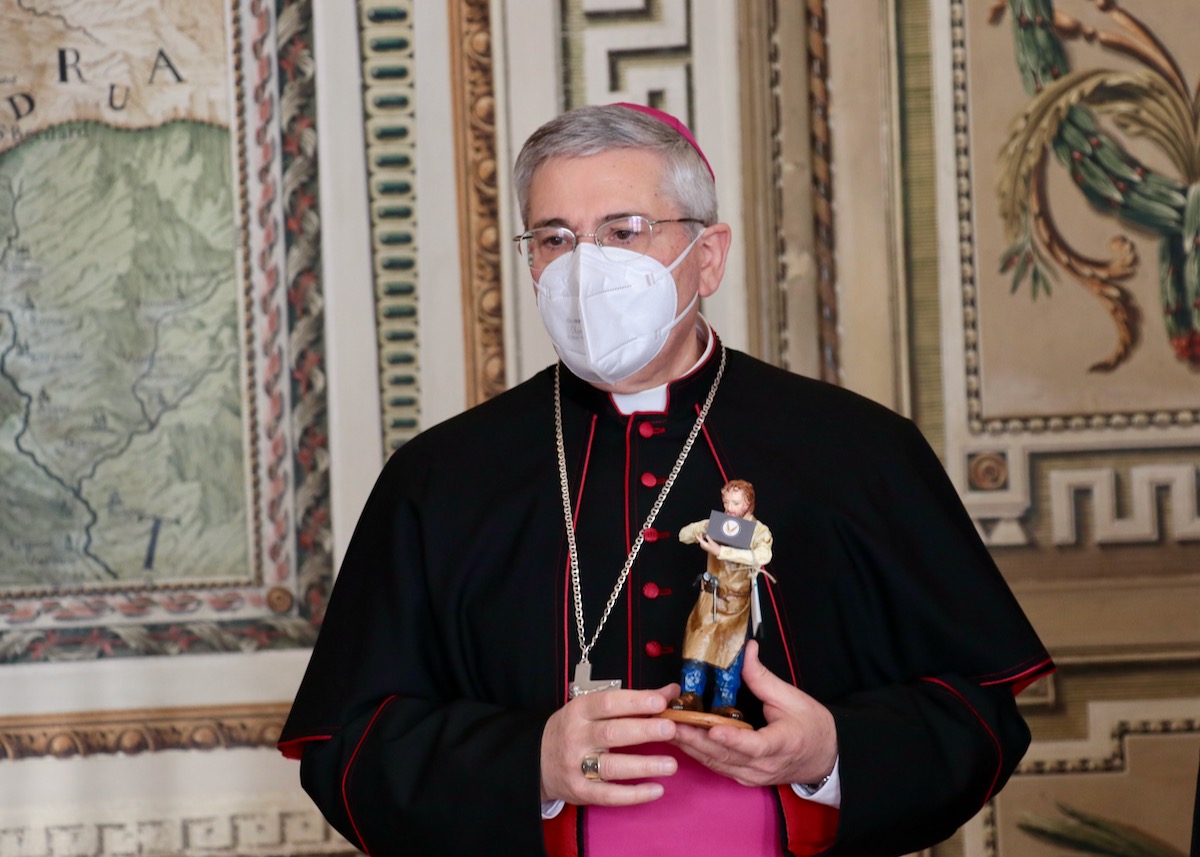 Realizzata in cartapesta dal maestro artigiano leccese Claudio Riso, la statuina è stata ideata da Coldiretti, Fondazione Symbola e Confartigianato, sotto l’egida del Manifesto di Assisi, e consegnata nella mattina di oggi, lunedì 20 dicembre 2021, dal Presidente di Coldiretti Valle d’Aosta Alessio Nicoletta e da Stefano Fracasso, Segretario Confartigianato Imprese Valle d'Aosta, al Vescovo di Aosta, Monsignor Franco Lovignana.