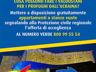 A garanzia di una gestione semplificata e centralizzata dell’emergenza, la Protezione civile regionale ha attivato il numero verde 800 99 55 54, cui si possono rivolgere sia le persone che richiedono assistenza sia coloro che intendono mettere a disposizione gratuitamente appartamenti o stanze vuote per l’accoglienza.
