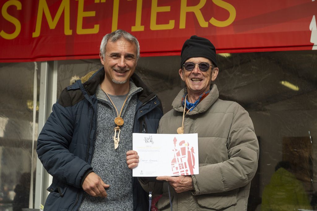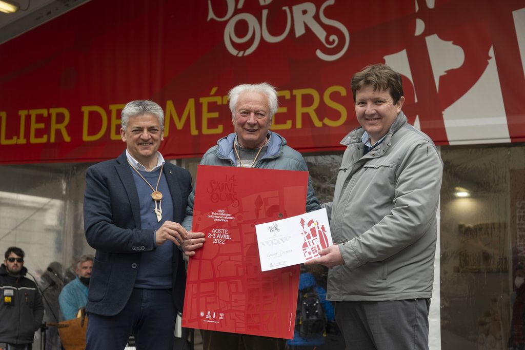 Motivazione: lo scultore, con la sua opera ha rappresentato l’espressione del dono attraverso la raffigurazione dell’elemento valoriale da cui ha preso spunto la Fiera di Sant’Orso: la distribuzione dei sabots ai poveri del borgo ai piedi del campanile della Collegiata di Sant’Orso scolpito nella sua interezza. A favorire il giudizio della Giuria è stato anche l’altissimo livello tecnico che si riscontra nell’opera realizzata.