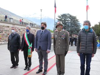 Oggi, lunedì 25 aprile 2022, in occasione della Festa della Liberazione, il Presidente della Regione Erik Lavevaz, insieme al Sindaco di Aosta Gianni Nuti e al Vicepresidente nazionale ANPI, Alessandro Pollio Salimbeni, alla presenza delle autorità militari, civili e religiose, ha reso omaggio a tutti i caduti in guerra con la deposizione di una corona al Cimitero comunale di Aosta e al Giardino della Rimembranza, in via Boniface Festaz. I momenti solenni della mattinata si sono conclusi in piazza Chanoux con l’Alzabandiera, la deposizione di una corona al Monumento del Soldato valdostano e con i discorsi celebrativi.