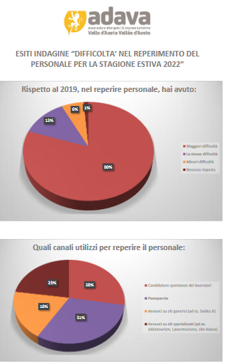 Al questionario hanno risposto poco più di 230 strutture ricettive, di cui l’80% ha risposto di avere maggiori difficoltà nel reperimento del personale rispetto al 2019, anno pre-covid.