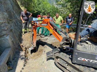 Un cane di piccola/media taglia, è scivolato in un tubo di drenaggio a lato strada. Le squadre giunte sul posto hanno constatato che l’animale era incastrato. Si è reso necessario l'intervento di un piccolo scavatore per raggiungere il tubo e poter salvare l'animanle.