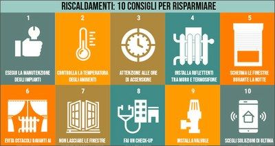 Con l’avvio della stagione dei riscaldamenti[2], che quest’anno inizia il 22 ottobre in oltre la metà degli 8 mila comuni italiani ENEA propone anche 10 regole pratiche per scaldare al meglio le abitazioni, risparmiare in bolletta e salvaguardare l’ambiente abbattendo le emissioni di CO2.