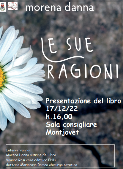 Morena Danna presenterà 'Le sue ragioni' anche a Montjovet sabato prossimo.