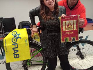 Pietro Giglio presidente della Fiab Aosta, ha aperto l'incontro rivolgendo un Grazie di ❤ ad Alessando Delfino 🐬 per aver percorso più di 1000 km in bici 🚴♀️ da Aosta fino a Trieste per l'acquisto di un tandem da destinare all'uso di persone con disabilità.