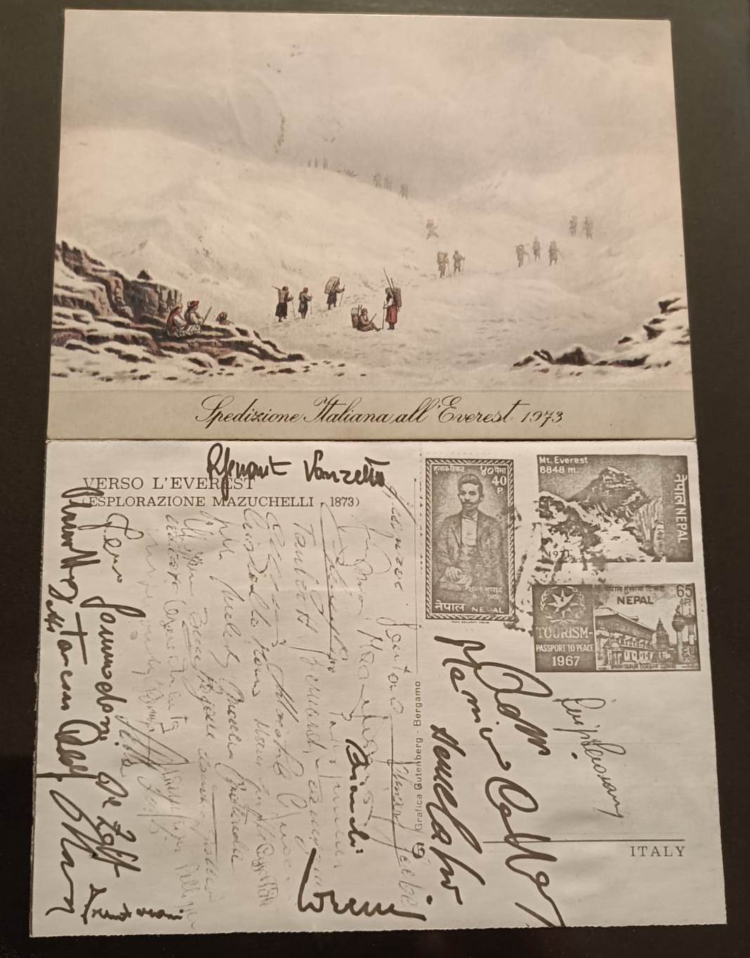 La cartolina dell'epoca firmata da tutti i partecipanti alla spedizione (foto El.Ca.)