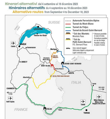 Le alternative ai viaggi attraverso il traforo includono il tunnel del Frejus, il tunnel del Gran San Bernardo e altri passi montani, ma questi stessi percorsi possono essere soggetti a chiusure stagionali dovute alle condizioni meteo-rologiche avverse.