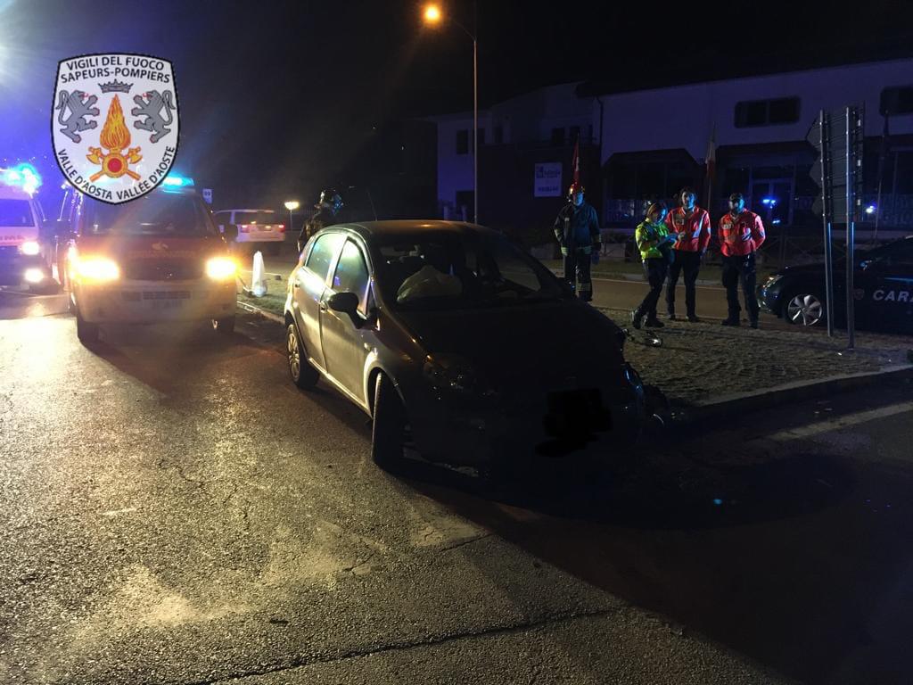 I vigili del fuoco sono intervenuti verso le 3.00 sulla SS26 , nel comune di Saint-Cristophe, nei pressi della "rotonda Sogno" per un incidente stradale autonomo.