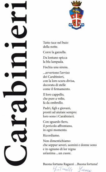 Questa toccante dimostrazione di stima e riconoscimento ha reso omaggio non solo alla maestria poetica della Signora Fontanella, ma anche alla dedizione e al servizio encomiabile reso dai Carabinieri, valorosi custodi della sicurezza e della tranquillità della comunità italiana.