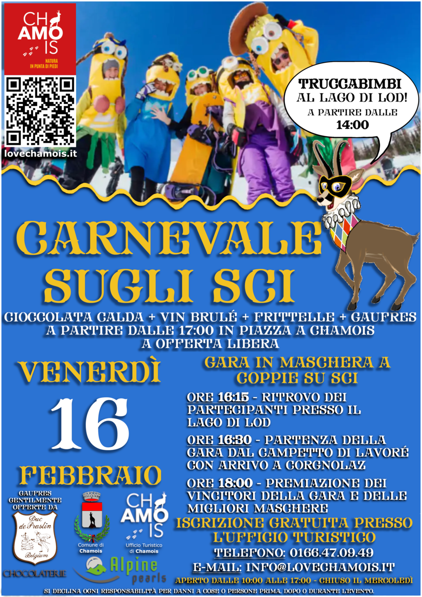 Per ulteriori informazioni su queste emozionanti attività e per scoprire tutto ciò che il Carnevale sugli Sci 2024 ha da offrire, vi invitiamo a consultare i volantini allegati. Non lasciatevi sfuggire l'opportunità di vivere momenti indimenticabili immersi nella bellezza delle montagne di Chamois e nell'atmosfera festosa di questa tradizione secolare.