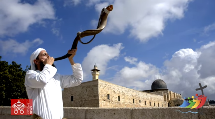 Rimanda all’udito la parola Giubileo. Richiama infatti il caratteristico suono penetrante del corno di montone o ariete, lo shofar, che nella tradizione biblica segna l’inizio di alcune feste sacre per l’ebraismo come il Rosh haShanah, il capodanno ebraico o lo Yom Kippur, giorno dell’espiazione. Lo strumento è menzionato spesso nella Torah, nel Talmud e nella successiva letteratura rabbinica.
