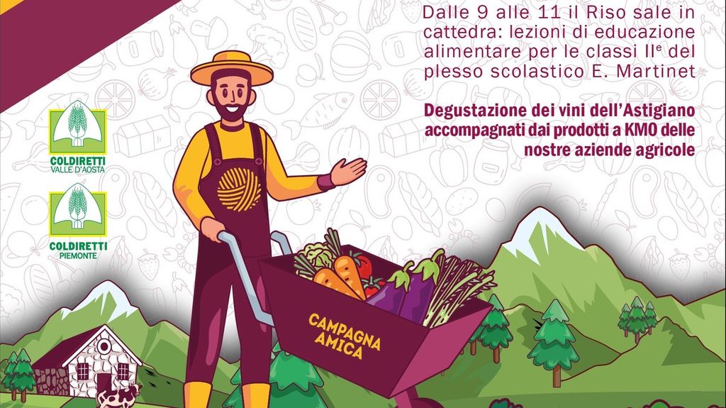 La mattinata si chiuderà con una degustazione di vini dell'Astigiano accompagnati dai prodotti a km zero delle aziende valdostane per suggellare l’incontro tra Piemonte e Valle d’Aosta, tra l’agricoltura di pianura e e di montagna.