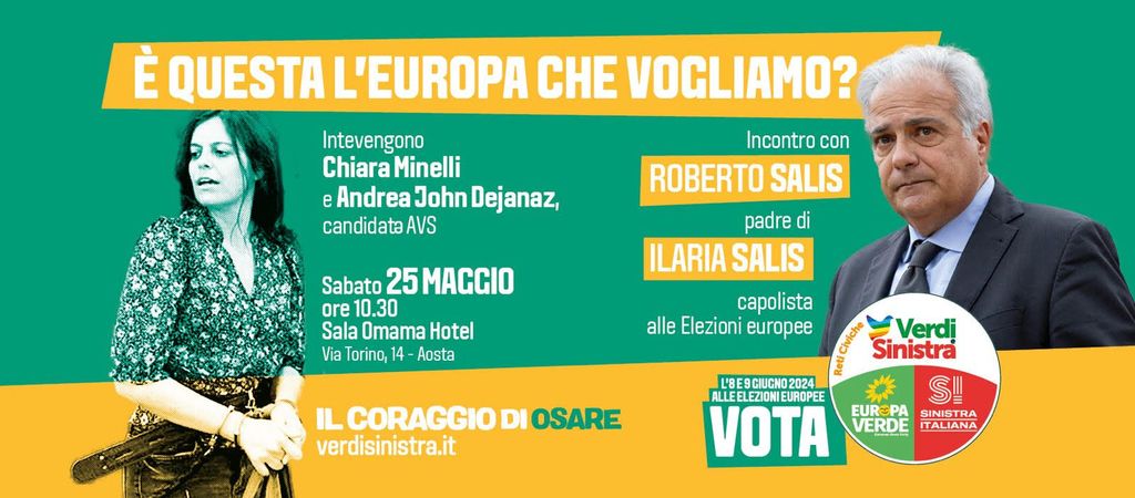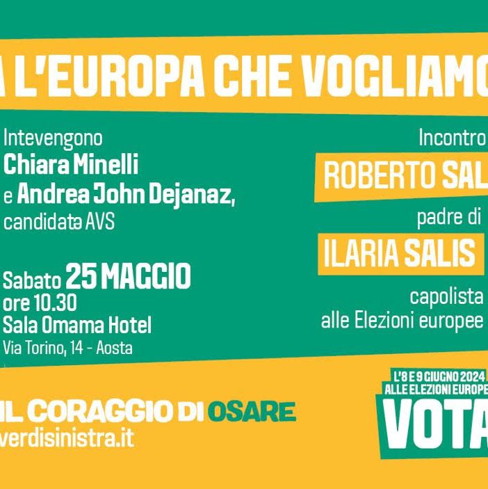 Su questi argomenti, ed in particolare su quello dei diritti, Alleanza Verdi-Sinistra organizza un incontro pubblico che si svolgerà Sabato 25 maggio, ore 10,30, presso la sala delle conferenze dell'Hotel Omama, via Torino 14, Aosta