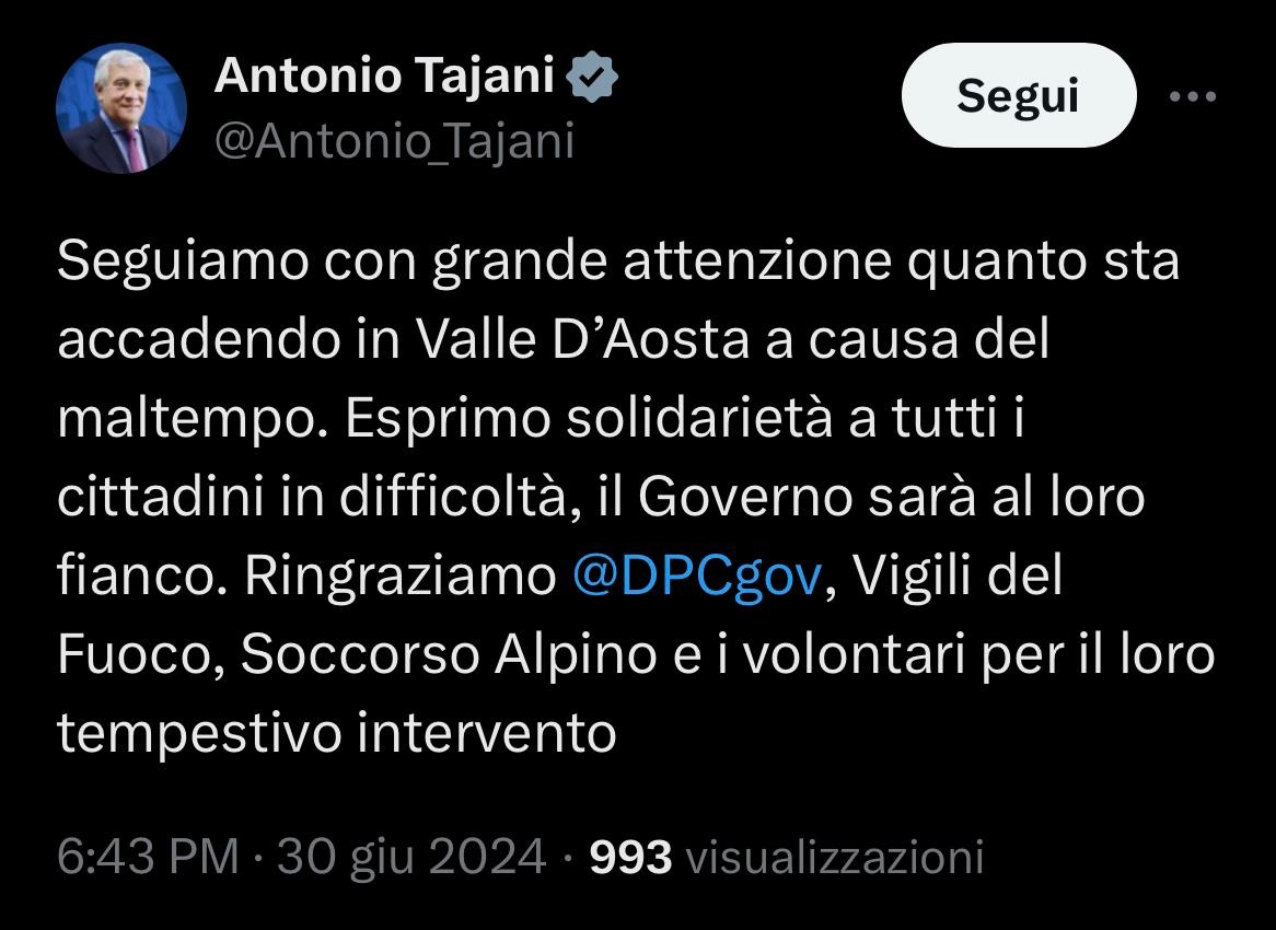 L’incontro di ieri e la successiva partecipazione del Ministro all’evento sportivo dimostrano un impegno concreto verso le problematiche locali e le sfide che la comunità di Valtournenche e della Valle d’Aosta si trova ad affrontare, sia in termini di recupero dai danni passati sia di promozione e sviluppo futuro. Zangrillo ha ricordato il primo stanziamento di 20,6 milioni di euro già deliberato dal Consiglio dei Ministri a valere sul Fondo per le emergenze nazionali e nel contempo ha garantito l’aiuto e il sostegno anche agli operatori privati, non appena le quantificazioni dei danni saranno trasmesse dalla Regione al Dipartimento della Protezione Civile nazionale.(a.b).