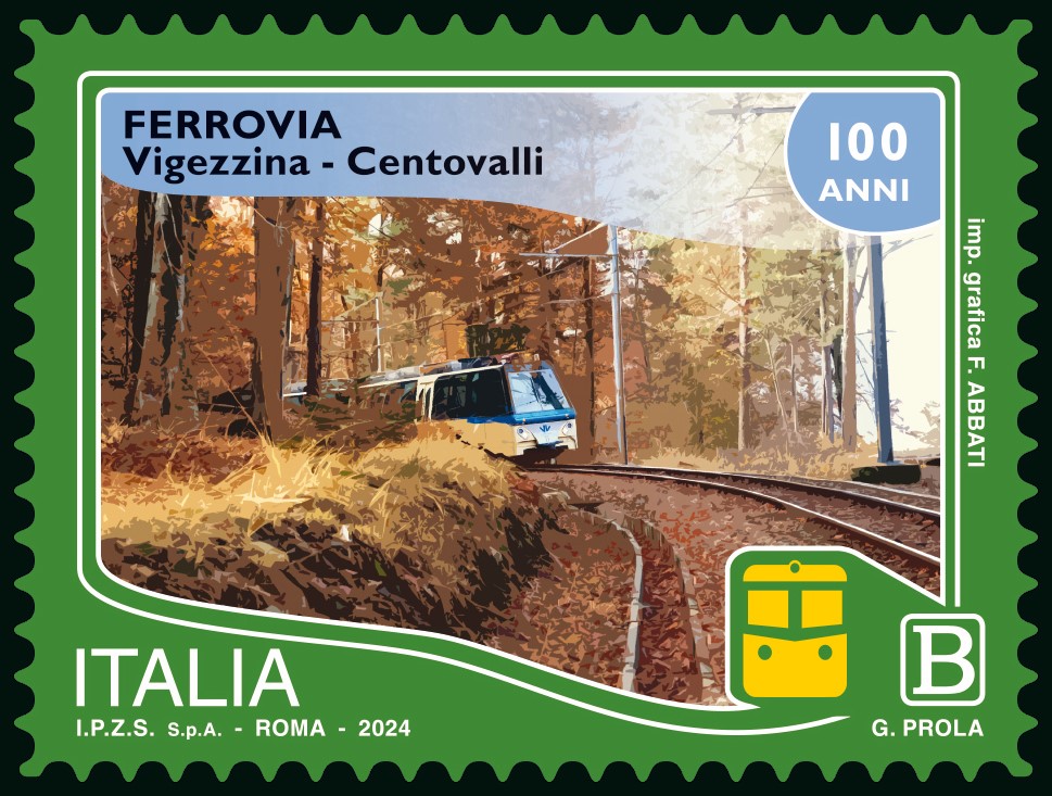 Il Ministero delle Imprese e del Made in Italy emetterà il giorno 2 agosto 2024 quattro francobolli ordinari appartenenti alla serie tematica tematica “il Patrimonio naturale e paesaggistico” dedicati al mondo senza tempo delle ferrovie: Ferrovia Vigezzina-Centovalli, nel centenario; Ferrovia Circumetnea; Stazione ferroviaria di Sestri Levante, nel centenario dell’inaugurazione; Tronco ferroviario Chieri Trofarello, nel 150° anniversario dell’inaugurazione