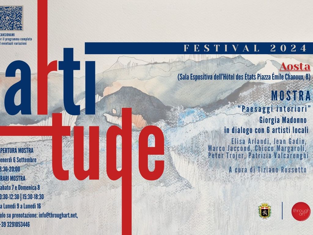 Nell'ambito del Festival Artitude 2024, si terrà ad Aosta la mostra personale dell'artista Giorgia Madonno presso la sala espositiva dell'Hôtel des États, in Piazza Chanoux. La mostra, aperta dal 6 al 16 settembre 2024, presenta una selezione di dipinti realizzati con acquerelli e tecniche miste, che offrono uno spaccato delle esperienze interiori e dei viaggi vissuti dall'artista in diversi Paesi tra cui Italia, Francia, Stati Uniti, Cina e Singapore.