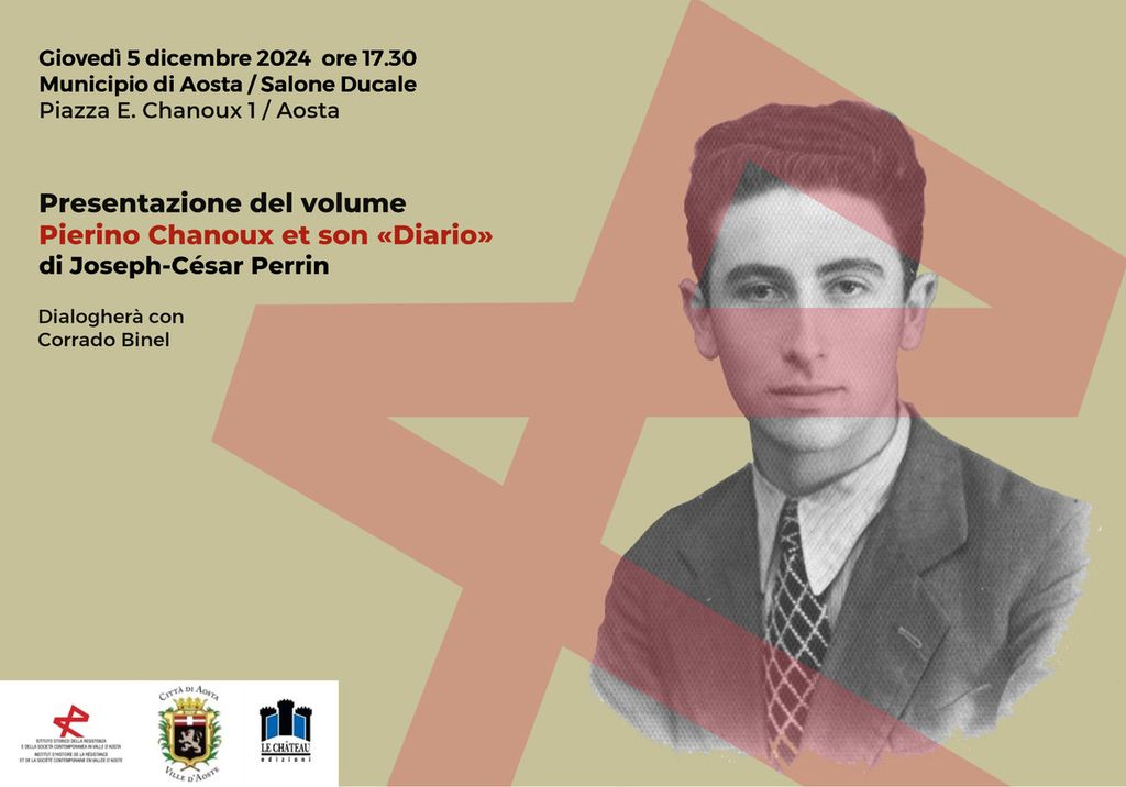 À cent ans de sa naissance et à quatre-vingt de sa mort il était important de faire sortir de l’oubli un jeune maquisard qui s’est sacrifié pour la liberté. Jeune lycéen, Pierino Chanoux a écrit un journal intime pour retracer son enfance et ses études. Lorsque il fut appelé aux armes par la République de Salò, ainsi qu’il l’avait déjà préannoncé à ses amis, il refusa de se présenter, déserta et d’abord il se cacha, puis ses sentiments le poussèrent à contribuer à la lutte antifasciste et il rejoint les maquisards de la bande “Vertosan”, et il tomba héroïquement sous le feu ennemi.