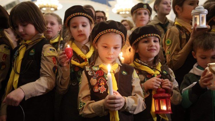 La martoriata Ucraina continua ad essere colpita da attacchi contro le città, che a volte danneggiano scuole, ospedali, chiese. Tacciano le armi e risuonino i canti natalizi! Preghiamo perché a Natale possa cessare il fuoco su tutti i fronti di guerra, in Terra Santa, in Ucraina, in tutto il Medio Oriente e nel mondo intero. E con dolore penso a Gaza, a tanta crudeltà; ai bambini mitragliati, ai bombardamenti di scuole e ospedali… Quanta crudeltà!
