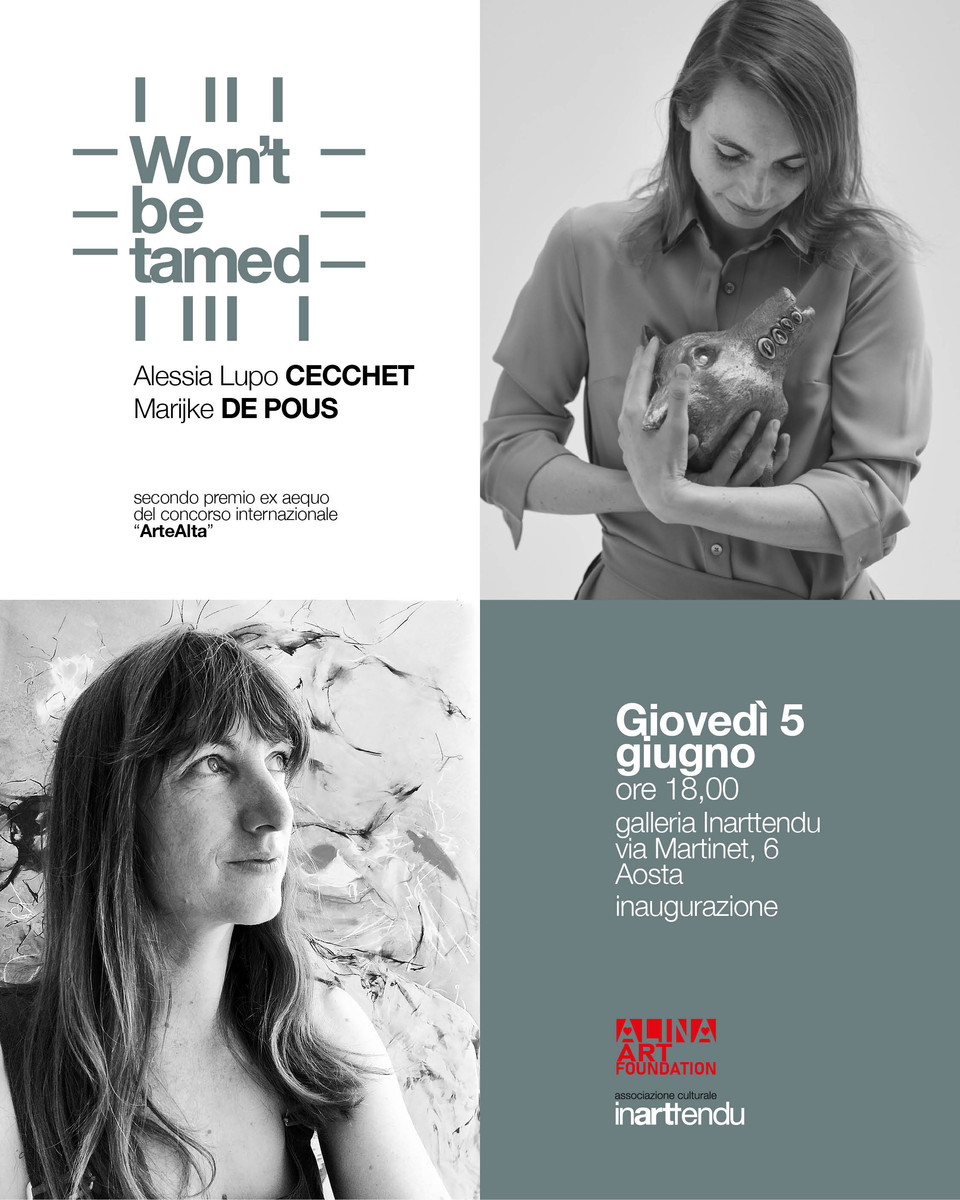 C’è un confine – sottile, tagliente, fertile – dove l’arte incontra l’indicibile. Un territorio interiore e, al tempo stesso, politico, dove non si chiede permesso per esistere. È su questo crinale che si muove “WON’T BE TAMED”, la mostra bipersonale delle artiste Alessia Lupo Cecchet e Marijke de Pous, ospitata dalla Galleria Inarttendu di Aosta dal 5 giugno al 5 luglio 2025.
