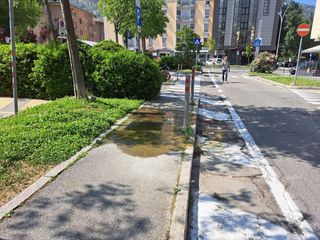 Lo dicono le foto, e non sono quelle patinate del sito del Comune o dei progetti su carta: sono scatti veri, presi a pochi metri da dove, ogni tanto, sfreccia un assessore in bici per promuovere la mobilità sostenibile. Immagini che raccontano meglio di mille comunicati: tombini sfondati, buche e avvallamenti da rally cittadino, marciapiedi che sembrano i sentieri del Monte Zerbion dopo la pioggia. E poi le siepi, pubbliche e private, che invadono i camminamenti come se fossero Amazonia: l’unico machete richiesto oggi in città è per andare a gettare la spazzatura.