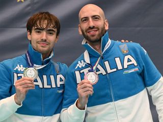 GENOVA (ITALPRESS) - Un argento e un bronzo dalla spada azzurra agli Europei di Genova. E' il bottino al termine della seconda giornata di gare dopo il bronzo conquistato ieri dalla fiorettista Martina Batini. Matteo Galassi chiude al 2° posto, lui che è ancora categoria Under 20, e sul podio con lui sale anche il veterano Andrea Santarelli, 3° classificato. Una prova di forza per gli spadisti italiani, considerando anche l'ottima prova di Valerio Cuomo che chiude 5° fermato solo da un derby, nei quarti di finale, contro Santarelli. Medaglia sfiorata anche per Mariella Viale, pure lei giovanissima (vent'anni, proprio come Galassi), che ha concluso in 8^ posizione - migliore delle azzurre - nella sciabola femminile. Da numero 1 dopo la fase a gironi, la cavalcata di Matteo Galassi nel tabellone di eliminazione diretta è iniziata con il successo al minuto supplementare, dopo un assalto molto combattuto, sul lussemburghese Giannotte (15-14). La prova del "classe 2005" di Cervia è poi proseguita battendo il portoghese Frazao (15-13). Un'emozione dopo l'altra, il vicecampione del Mondo della categoria Giovani di Wuxi 2025 negli ottavi di finale si è imposto sul ceco Cupr con il risultato di 15-12. La certezza della medaglia il portacolori del Centro Sportivo Carabinieri se l'è guadagnata grazie al 15-9 inflitto allo svizzero Hauri. Poi, in semifinale, il derby italiano contro il compagno di squadra Andrea Santarelli, che ha visto Matteo Galassi vincere 15-8 e staccare così il pass per la finale. Nell'ultimo atto, opposto all'ucraino Svichkar, lo spadista azzurro ha lottato come sempre ma è stato il suo avversario a imporsi con il punteggio di 15-11 vincendo il titolo europeo. Ma la standing ovation del pubblico di Genova è stata tutta per Matteo Galassi, con al collo un argento continentale che luccica, tra i "grandi", lui che è ancora un Under 20 e ha dimostrato d'essere all'altezza dei giganti della specialità. Un giovane e un veterano della spada azzurra sul podio di Genova. E' splendido anche il bronzo di Andrea Santarelli, che ha iniziato il suo tabellone con la vittoria sull'atleta neutrale Gurov (15-10), prima del successo sul portoghese Rod (15-12) nel turno dei 32. Match dominato, poi, dallo spadista delle Fiamme Oro negli ottavi: 15-6 sull'estone Priinits. Qui, nell'assalto che valeva il podio, Andrea Santarelli ha avuto la meglio su Valerio Cuomo (15-9) nella prima delle due sfide tutte in "casa Italia". Lo stop è poi arrivato contro Matteo Galassi in semifinale, lasciando un bronzo importantissimo ad Andrea Santarelli, che torna così sul podio continentale a livello individuale a sei anni di distanza dall'argento di Dùsseldorf nel 2019. Tra i migliori otto anche Valerio Cuomo. Lo spadista campano si è imposto nei suoi due primi match ad eliminazione diretta del belga Loyola (15-13) e dell'ucraino Makiienko (15-9). Negli ottavi di finale l'atleta delle Fiamme Oro ha superato in rimonta, al minuto di priorità, l'ungherese Koch (15-14) in un assalto bellissimo, prima di venir battuto nel derby da Andrea Santarelli (15-9) con il 5° posto finale. Ha chiuso invece 10° Davide Di Veroli. Si è fermata ad un passo dal podio la prova di Mariella Viale, migliore delle italiane nella sciabola femminile. La 20enne napoletana ha iniziato il suo percorso con la vittoria contro l'atleta neutrale Smirnova (15-11) nel primo incontro di giornata. Poi il successo sull'ucraina Bondar (15-11) nel turno delle 32 e, negli ottavi di finale, quello sulla turca Erbil (15-7) entrando tra le migliori otto della competizione. Lo stop per l'azzurra 2005 è arrivato nei quarti dove ha lottato ma è stata superata dall'ucraina Komashchuk 15-11 concludendo così in 8^ posizione. Sempre tra le sciabolatrici, stop agli ottavi di finale per Chiara Mormile e Michela Battiston che hanno chiuso rispettivamente 10^ e 12^ dopo le battute d'arresto rispettivamente con la polacca Matuszak (15-13) e l'ungherese Katona (15-13). Da entrambe, però, sono comunque arrivati segnali positivi. Nella stessa gara è 39^ Manuela Spica. Domani, nella terza giornata dei Campionati Europei Assoluti Genova 2025, si chiuderà il programma delle gare individuali con le competizioni di spada femminile e fioretto maschile. Per l'Italia in pedana le spadiste Rossella Fiamingo, Giulia Rizzi, Alberta Santuccio e Sara Maria Kowalczyk, e i fiorettisti Guillaume Bianchi, Alessio Foconi, Filippo Macchi e Tommaso Marini. - foto uff st Federscherma -(ITALPRESS).
