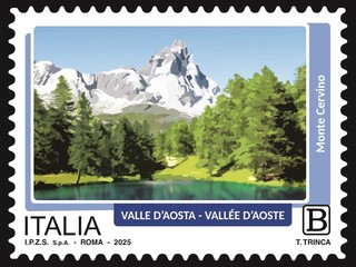 Completano il francobollo le legende “VALLE D’AOSTA”, “VALLÉE D’AOSTE” e “MONTE CERVINO”.