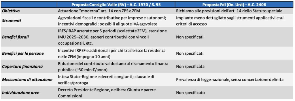 La differenza tra la proposta a trazione Rassemblement Valdôtain, approvata dal Consiglio Valle e oggi incardinata sia alla Camera che al Senato, e quella di FdI è netta.