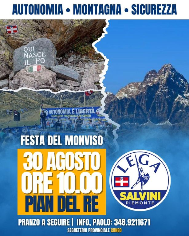 Nel cuore della provincia, proprio dove nasce il Po, sabato 30 agosto la Lega Cuneo vivrà un importante momento di confronto e comunità: la Festa del Monviso, appuntamento fisso in vista dell’autunno. Un luogo simbolico, a Pian del Re (Crissolo), per un evento che affronterà i temi centrali per il futuro del territorio.