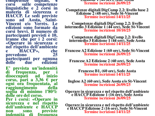 I corsi si terranno in presenza ad Aosta, Saint-Vincent e Verrès, con lezioni mattutine (massimo 4 ore al giorno, fino a 5 giorni la settimana). A rendere l’iniziativa più inclusiva c’è anche la collaborazione con la Cooperativa La Libellula, che garantirà servizi di cura per bambini, anziani e persone con disabilità, facilitando così la partecipazione di chi ha impegni familiari.