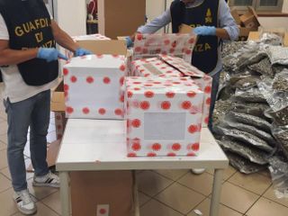 BOLOGNA (ITALPRESS) - I militari del Comando Provinciale della Guardia di Finanza di Bologna hanno proceduto al sequestro di iniziativa di oltre 500 kg di derivati della canapa sativa nei confronti di un imprenditore modenese operante nel settore del commercio via internet di prodotti derivanti della canapa light. Il sequestro giunge all'esito di un'attività d'iniziativa svolta dal I Gruppo di Bologna in relazione alle esportazioni verso il Regno Unito da parte di società operanti nel commercio via internet, sviluppata attraverso l'analisi delle spedizioni ed il monitoraggio dei siti web e dei social network. (ITALPRESS).Foto: Guardia di Finanza