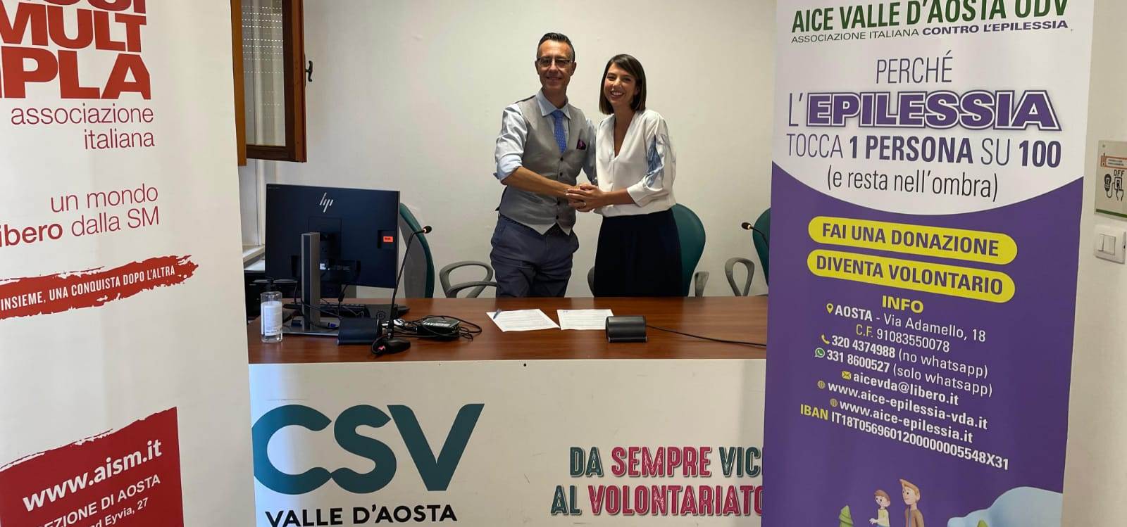 Venerdì 5 settembre, nella sede del CSV regionale, è stato siglato un Protocollo di intesa che porta in sé un obiettivo chiaro e ambizioso: trasformare la collaborazione tra associazioni in un motore di solidarietà e di integrazione. A sottoscriverlo, l’AICE Valle d’Aosta – Associazione Italiana Contro l’Epilessia ODV, rappresentata dal presidente Manuele Amateis, promotore dell’accordo, e l’AISM Valle d’Aosta – Associazione Italiana Sclerosi Multipla APS, con la vicepresidente Giorgia Scavuzzo.