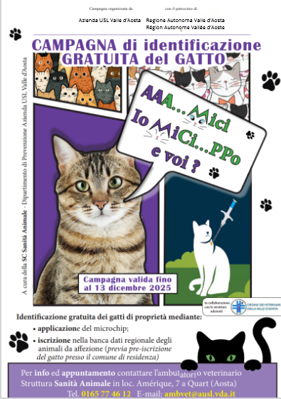C’è un proverbio che dice: “Il gatto non appartiene a nessuno, ma tutti appartengono al gatto”. È vero, eppure oggi più che mai è importante garantire a questi compagni silenziosi di vita una tutela concreta e riconoscibile. È il senso della campagna promossa dall’Assessorato alla Sanità e dall’Azienda USL della Valle d’Aosta, che fino al 13 dicembre 2025 offre ai proprietari di gatti la possibilità di applicare gratuitamente il microchip e iscrivere l’animale alla banca dati regionale degli animali da affezione.