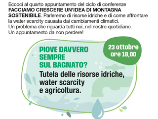 Tutto è pronto per il quarto appuntamento che si terrà alle ore 18 di giovedì 23 ottobre presso la Sala Polivalente del Comune di Arvier. Il tema dell'incontro sarà la tutela delle risorse idriche e la "water scarcity" causata dai cambiamenti climatici. Un argomento che riguarda tutti noi, nel nostro quotidiano. Imparare a gestire al meglio le risorse idriche che i cambiamenti climatici stanno impoverendo sempre più è una sfida fondamentale per la tutela e salvaguardia non solo del nostro territorio ma anche delle nostre attività produttive nel campo dell'agricoltura e dell'allevamento.